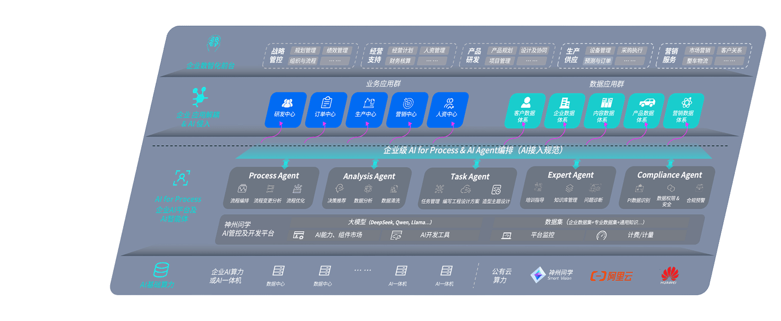 雀魂问学智车解决方案是一套基于AI技术的汽车行业智能化系统,,覆盖从底层算力到顶层AI应用的全栈方案。。方案由算力层、、、、模型层和应用层组成:算力层,,方案支持多种一体机配置,,,,具备云端灵活部署、、、多云适配以及动态优化计算资源的能力;模型层,,,,雀魂问学平台版提供了企业级AI应用一站式构建与管理平台,,,,支持基于后训练强化技术的汽车企业专属模型的训练、、、、评测和运营;应用层,,雀魂问学DeepSeek版提供包括超级员工、、、、智能招采、、智能营销、、智能客服、、、AI for BI等一系列解决方案,,可助力汽车行业实现数字化转型,,让管理更智能、、、响应更敏捷。。